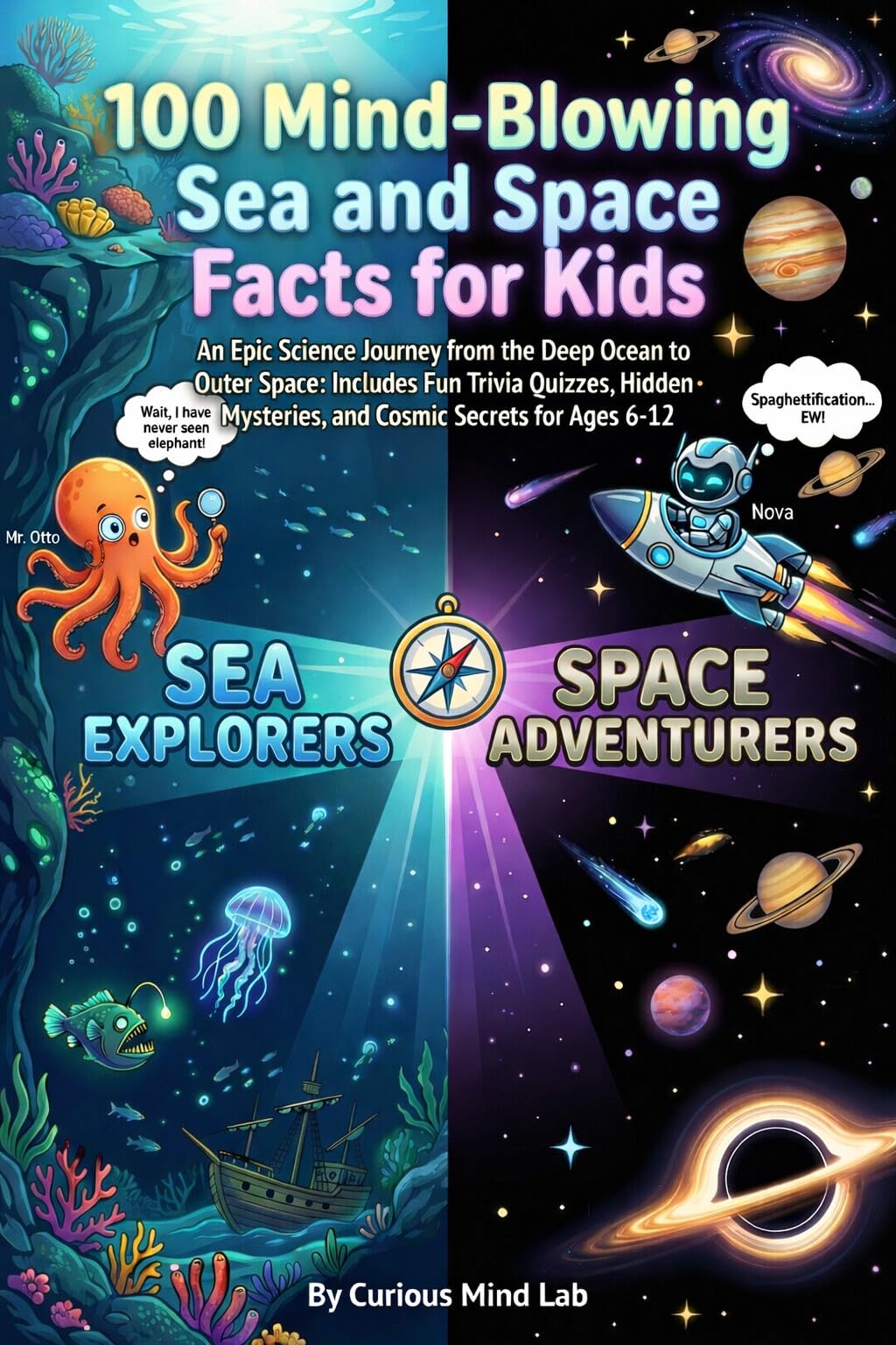 Dive into the Deep and Blast Into the Unknown!Does your child wonder what’s lurking at the bottom of the “Midnight Zone”? Or what a sunset looks like on the “Rusty World” of Mars?100 Mind-Blowing Sea and Space Facts for Kids is the ultimate interactive STEM adventure for young explorers. Join Nova (your high-tech space probe) and Mr. Otto (your multi-armed sea expert) on an epic double-adventure!, It’s a mission to uncover the greatest mysteries of our planet and the universe beyond.From the crushing pressure of the deep blue sea to the zero-gravity silence of outer space, your young explorer will discover:🌊 The Deep Blue Sea: Giant “sea pickles,” glowing jellyfish, and the incredible secrets of shipwrecks and hidden treasures.🚀 The Infinite Reaches of Space: How astronauts go to the bathroom in zero-G, why some planets rain diamonds, and the mystery of invisible dark matter.🧠Interactive “Brain-Check” Quizzes: Test your knowledge after every section! Can you earn the title of certified Space & Sea Expert?📖 The Big Words Decoder: A kid-friendly glossary to help master big science words like Microgravity and Bioluminescence.Why Parents Love This Book:STEM-Focused Learning: Encourages a love for science, marine biology, and astronomy.Perfect for Ages 6-12: Written in a fun, engaging style that is easy to read but packed with real scientific value.Built-in Interactivity: Beyond just facts, the quizzes and “Secrets” email form (inside!) keep kids engaged long after they finish reading.Whether you’re looking for the perfect gift for curious kids or a supplement for homeschool science, this book is your ticket to a world of wonder.The adventure is waiting. Are you ready to explore?Scroll up and click “Buy Now” to start the journey from the ocean floor to the stars!