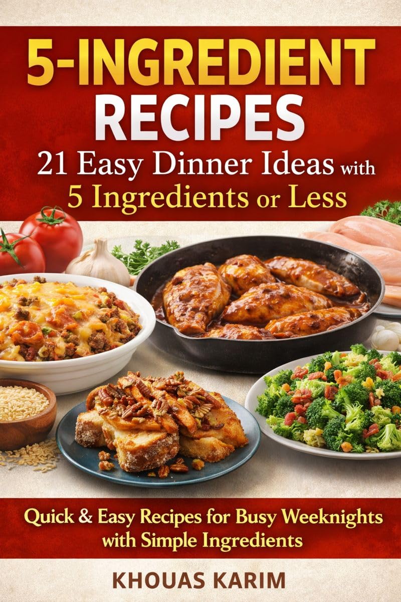 🍽️ 5-Ingredient Recipes: 21 Easy Dinner Ideas with 5 Ingredients or LessSimple ingredients. Delicious results. Zero stress.Cooking doesn’t have to be complicated to be amazing. 5-Ingredient Recipes: 21 Easy Dinner Ideas with 5 Ingredients or Less is your go-to cookbook for fast, budget-friendly meals that deliver big flavor with minimal effort.Whether you’re a busy parent, a beginner cook, or simply tired of long grocery lists, this collection proves that fewer ingredients can still create unforgettable dishes.Inside this book, you’ll discover:✅ 21 easy and satisfying recipes using 5 ingredients or less✅ Quick dinner ideas, side dishes, and desserts✅ Slow cooker, oven, and no-fuss recipes✅ Budget-friendly meals made from everyday pantry staples✅ Comfort food favorites the whole family will loveFrom hearty casseroles and effortless chicken dishes to classic sides and irresistible desserts, every recipe is designed to save you time, money, and energy—without sacrificing taste.Perfect for:Busy weeknightsBeginner cooksMeal planning on a budgetAnyone who loves simple, comforting foodIf you’re looking for easy recipes that actually work, this cookbook will quickly become a favorite in your kitchen.👉 Less shopping. Less prep. More flavor.Start cooking smarter today!