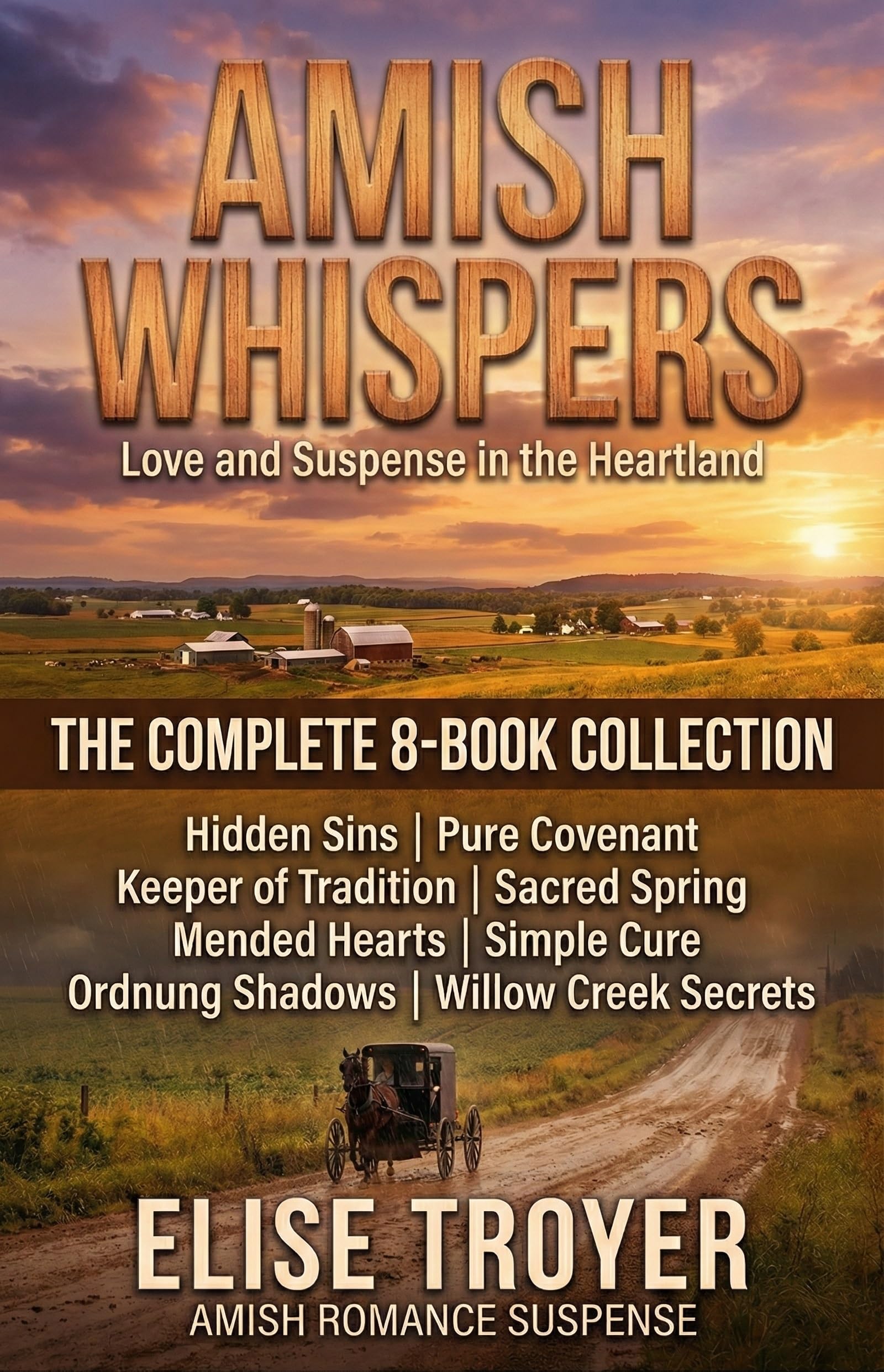 Faith, Love, and Danger: Discover the heart of the Amish country where secrets whispered in the dark are finally brought to light.In the quiet, lantern-lit world of the Amish, peace is a way of life—but for these eight families, that peace is about to be shattered. Amish Whispers: Love and Suspense in the Heartland brings you an addictive collection of stories where tradition meets treachery, and where the only way to survive is through unwavering faith and unexpected love.From the rolling fields of Ohio to the rugged mountains of Montana, this boxset follows courageous men and women as they confront long-buried mysteries, external threats, and the complexities of the human heart.Included in this Boxset:Hidden Sins: When Zillah Adamson enters the community under a false identity to seek justice for her family’s ruin, she never expected to find an ally in the solitary miller, Xavier Yoder. To protect her, they enter a marriage of convenience—but can their budding love survive the exposure of a dark, decades-old conspiracy?Keeper of Tradition: Sarah Miller has devoted her life to the family bakery and her siblings. But when a ruthless developer threatens to dismantle their village for profit, she must team up with a prodigal son to find the ancient documents that can save their way of life.Mended Hearts: A grieving widower and a compassionate teacher are drawn together when a mysterious sickness strikes their community’s livestock. As they hunt for the truth behind the scandal, they discover that healing a broken heart is the greatest miracle of all.Ordnung Shadows: On a prosperous Christmas tree farm, Gideon Hersh finds a dangerous package that shouldn’t exist. Now, he and his former flame, Irena, must race to uncover a traitor in their midst before the criminal world outside destroys their sanctuary.Pure Covenant: When an outsider claims ownership of the valley’s life-giving spring, Verity Wagner and Titus Unger must delve into the community’s history. Between hidden diaries and old “promise papers,” they find a connection that is as deep and enduring as the waters they protect.Sacred Spring: In the shadow of the Montana ridges, a cobbler with a secret and a woman with forbidden knowledge of the natural world join forces. To save their sacred waters from commercial exploitation, they must decide if some rules are meant to be broken for a higher calling.Simple Cure: Judah Kurtz, a quiet herbalist, finds her world upended when a wounded scientist collapses on her doorstep. He carries a medical breakthrough worth killing for. Can Judah hide him from the hunters closing in, or will the “English” world’s greed cost them everything?Willow Creek Secrets: A carved wooden bird found in the mud reopens a fifteen-year-old cold case. Schoolteacher Quentin Rothman and the steadfast Sarah Troyer must navigate a maze of shame and silence to find out what really happened to a girl who vanished years ago.Tropes you’ll love:Marriage of Convenience & Forced ProximityHidden Identities & Secret HeritagesWidower/Second Chance RomanceSmall-Town Secrets & Cold Case MysteriesAmish vs. Outsider Conflict