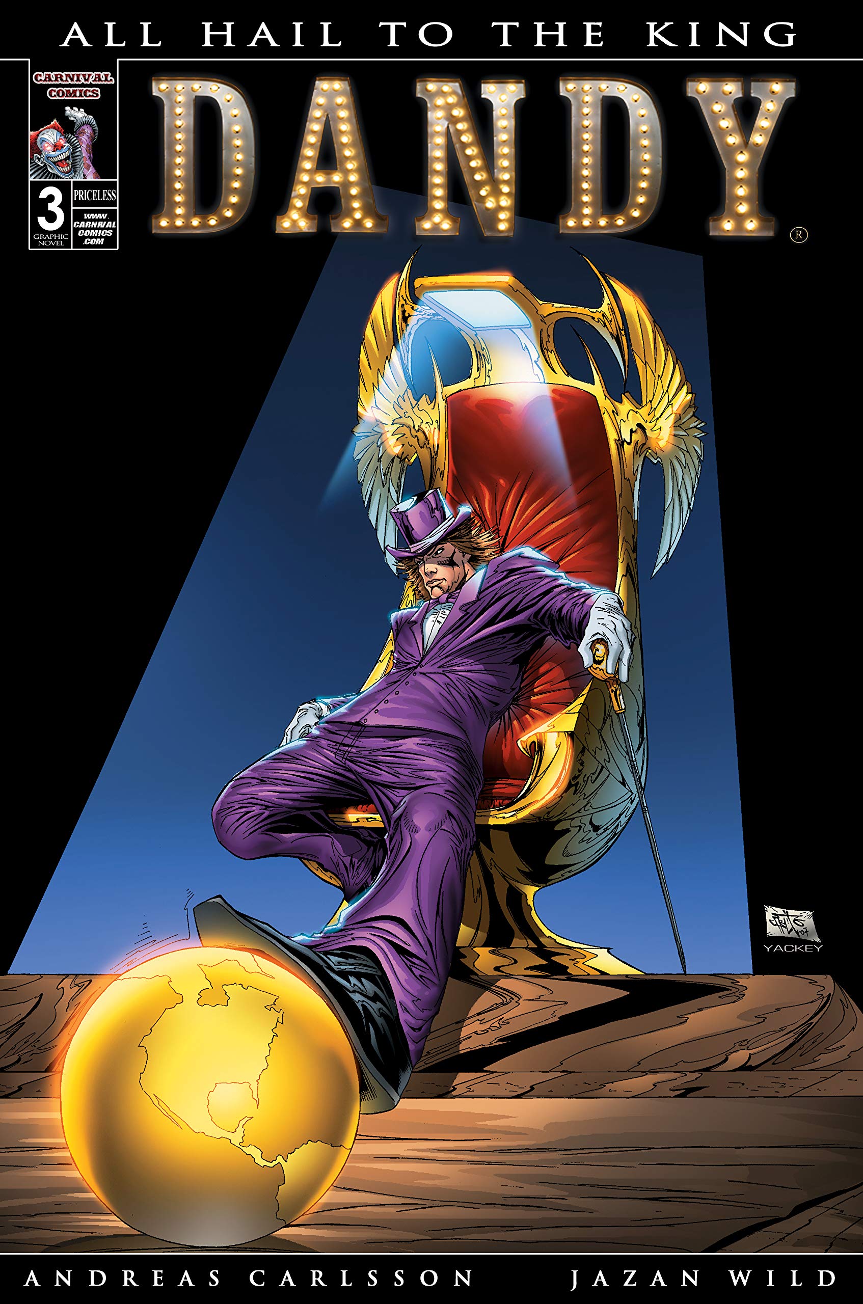 Dandy: All Hail to the King (Book Three in the Dandy Series.) Created by: Andreas Carlsson and Jazan Wild.You got it all, DANDY. But someone else, another orphan who entered Krazy’s Magical Nightclub, named Tommy “The Kidd” Kidston, wants your throne. He heard the melody soaring down the old alleyways and followed it out into the night too, but was it meant for his soul? Find out, as we journey back to a world of dreams. You are all invited into this wonder filled extravaganza! Welcome, One and All.. to a crazy world, where… If You Can Dream It, You Can Be It!”Dandy”™ “If You Can Dream It, You Can Be It!” ™