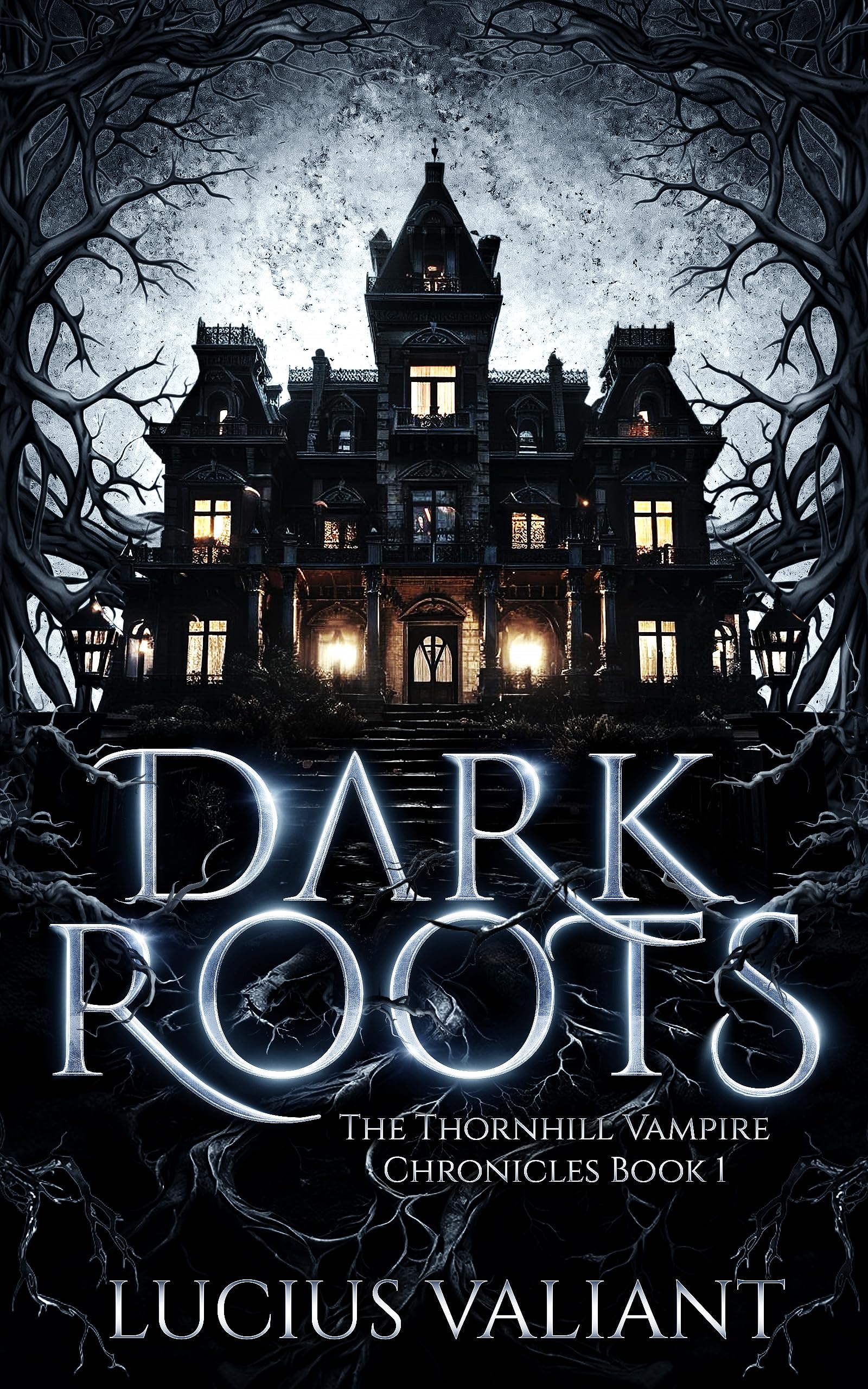 In “Dark Roots,” professional Hunter Harlan Thorne confronts a vampire threat at Thornhill Mansion, uncovering dark secrets and connections to his own lineage—an eerie, humorous start to the Thornhill Vampire Chronicles.