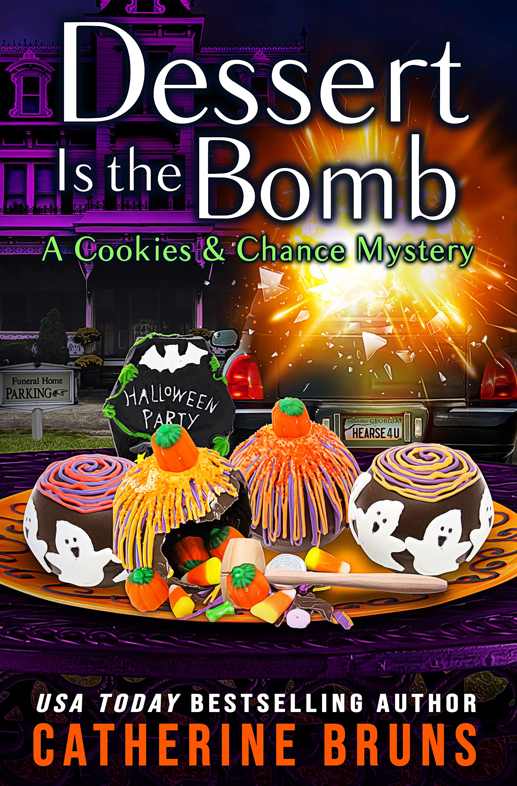 From USA Today bestselling author Catherine Bruns comes a hauntingly hilarious Halloween Cookies & Chance mystery!Baker turned sometimes-sleuth Sally Muccio has always loved Halloween, but this year she has more on her mind than ghosts and goblins. In addition to catering a party at her wacky father’s funeral home, a competing bakery has just moved in across the street from Sally’s Samples. The new owner, Celeste Delgado, seems intent on burying Sal’s novelty cookie shop into the ground with her sensational smash cake bombs. Suddenly, the homemade fortune cookies that Sal and her best friend Josie create with loving care are predicting an ominous future for their business.Before Sal can discover what’s behind Celeste’s grudge, the woman is killed by an explosion. To take the cake, Josie was heard threatening Celeste shortly before her death. A night in the slammer, another deadly explosion, and dangerous family secrets all add to Sal’s growing list of concerns. Like an oven timer, precious minutes of her life are ticking away. Can she find Celeste’s killer before everything blows up in her face? *Recipes Included!*The Cookies & Chance Mysteries:Tastes Like Murder (book #1)A Spot of Murder (short story in the “Killer Beach Reads” collection)Baked to Death (book #2)Burned to a Crisp (book #3)Frosted With Revenge (book #4)Silenced by Sugar (book #5)A Drizzle Before Dying (short story in the “Pushing Up Daisies” collection)Crumbled to Pieces (book #6)Sprinkled in Malice (book #7)Ginger Snapped to Death (book #8)Icing on the Casket (book #9)Knee Deep in Dough (book #10)Dessert is the Bomb (book #11)What critics are saying:”A fantastic cozy mystery!”—InD’Tale Magazine”I want to visit more with all of the quirky characters just to see what crazy and outrageous things they will do next!”—Fresh Fiction”The Cookies and Chance Mystery series is more than just a series….it’s a family!! Once you read the first book, you are hooked and feel like a member of the crazy Muccio family.”—Cozy Mystery Book Reviews