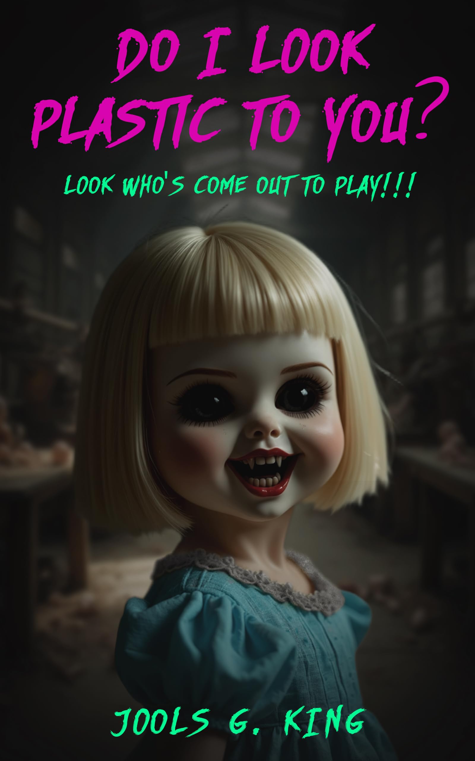 Five work colleagues fresh from a boozy night out to celebrate a promotion chance upon an abandoned old factory. Strout Dolls went bust during the 1970s.Penny is shocked to see a little girl run across the road and disappear inside the compound.It’s dark; it’s freezing. They’re in the middle of nowhere. Worse, they’ve all been drinking. They all just want to go home and sleep.Penny can’t be sure what she saw, but still if it’s a little girl all on her own… shouldn’t they take time to investigate?Just to be safe.Do I Look Plastic To You? is a dark, terrifying and macabre horror novel that poses the question: how does a child’s toy turn into a vicious, psychopathic killer? Not just one, but a whole storeful of them. Who is the genius madman behind these evil dolls? Can anyone survive one night at the old doll factory?Could you?