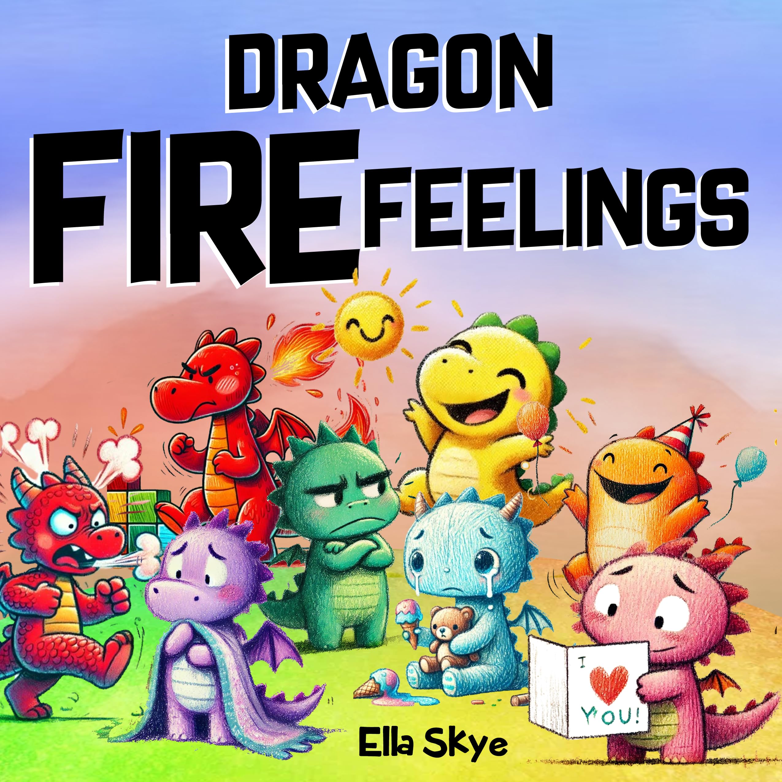 Welcome to Draconia, a magical land where dragons fly and feelings shine! In Dragon Fire Feelings, children are invited to meet a group of colorful dragons, each with their own special emotion. Through this fun and imaginative story, kids will learn that all feelings—whether they’re big, small, happy, or tough—are completely okay to have.Each dragon in Draconia experiences a different emotion: Flare, the red dragon, feels angry when things go wrong, but he calms down by taking deep breaths. Misty, the blue dragon, feels sad when her ice cream falls, but a big hug from her teddy makes her feel better. From Sunshine’s joyful dances to Emerald’s jealous pouts, each dragon shows children relatable ways to manage their emotions in healthy and positive ways.With simple rhymes, vibrant illustrations, and memorable dragon characters, Dragon Fire Feelings is perfect for preschoolers ages 3-5. This magical story helps kids understand that emotions—whether it’s happiness, anger, worry, or love—are normal and important. And just like their dragon friends, they can learn to handle their feelings with confidence and kindness.This book helps children:Identify and express a wide range of emotionsDevelop healthy coping strategies for feelings like anger, sadness, and anxietyLearn the importance of kindness, sharing, and calmnessBuild emotional intelligence through fun dragon charactersWhether your child is feeling excited like Amber, calm like Slate, or even scared like Onyx, Dragon Fire Feelings teaches them that every emotion is part of what makes them special. Add this enchanting book to your child’s library, and let these friendly dragons show them how to embrace and manage their big feelings!