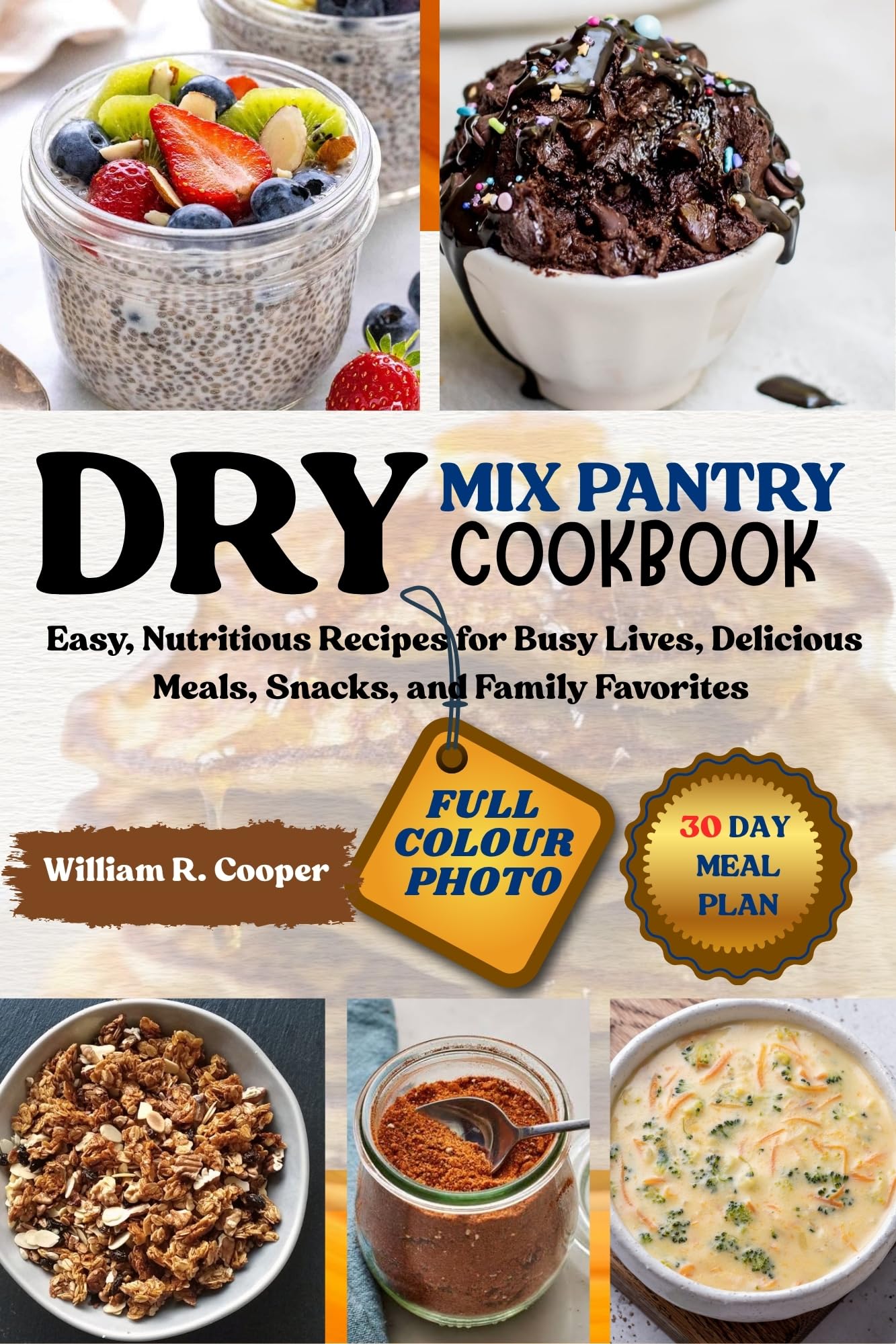 –FULL-COLOR PHOTOS FOR ALL RECIPES.INCLUDES NUTRITIONAL INFO & EASY INSTRUCTIONS.–30-DAY MEAL PLANDRY MIX PANTRY COOKBOOKThe Smart Way to Cook Healthy, Fast, and Delicious Meals Anytime!Do you ever wish you could make nutritious, homemade meals in minutes—without stress, waste, or complicated cooking?Step into the world of ultimate convenience with the Dry Mix Pantry Cookbook — your new secret weapon for faster cooking, healthier eating, smarter storage, and bigger savings! Whether you’re a busy parent, a meal-prep enthusiast, or someone who simply loves home-cooked goodness without the hassle… this book is made for you!–What This Book Brings to Your Kitchen (Introduction)Say goodbye to last-minute grocery runs and unhealthy fast-food choices! This cookbook helps you build a pantry that’s always ready to serve you. You’ll discover how to create long-lasting, flavorful, nutrient-powered dry mixes for soups, breakfasts, snacks, drinks, and full meals — all with clean ingredients and zero preservatives.Every recipe is thoughtfully designed to:✔ reduce cooking time✔ improve food shelf life✔ boost wellness with wholesome nutrition✔ bring joy and creativity back into your kitchenFrom cozy Black Bean Soup to energizing Nutty Granola and even instant plant-based milk… each mix promises flavor, flexibility, and fun in every jar!–7 Amazing Benefits Inside!–Healthy Recipes — nourishing meals packed with whole-food goodness– Full-Color Photos — every recipe beautifully illustrated for easy success-Quick & Super Easy — minimal steps, maximum flavor– Budget-Friendly — reduce waste + bulk-buy smart– Family-Friendly Meals — picky-eaters approved–Perfect for On-the-Go — travel-ready mixes for anytime, anywhere–Cleaner Eating — no chemicals, preservatives, or hidden additivesExclusive Bonuses Included–30-Day Meal Plan — a complete monthly guide to stay healthy & organized–Health Benefits Guide — learn what every ingredient does for your body–Extra Kitchen Tips & Tricks — expert hacks for storage & flavor boostingThese bonuses are only available in this edition — don’t miss out!–Why You Need It NOWWith rising food prices and busy schedules, every moment and every dollar counts. This cookbook gives you the power to prep once and enjoy many times, while transforming your pantry into a life-saving food station.–Quantities are limited — secure your copy today before it’s gone!–Ready to Upgrade Your Kitchen & Lifestyle?Tap into a world where healthy meets fast, delicious meets easy, and meal prep meets peace of mind.Don’t wait — click “Buy Now” and start cooking smarter today!