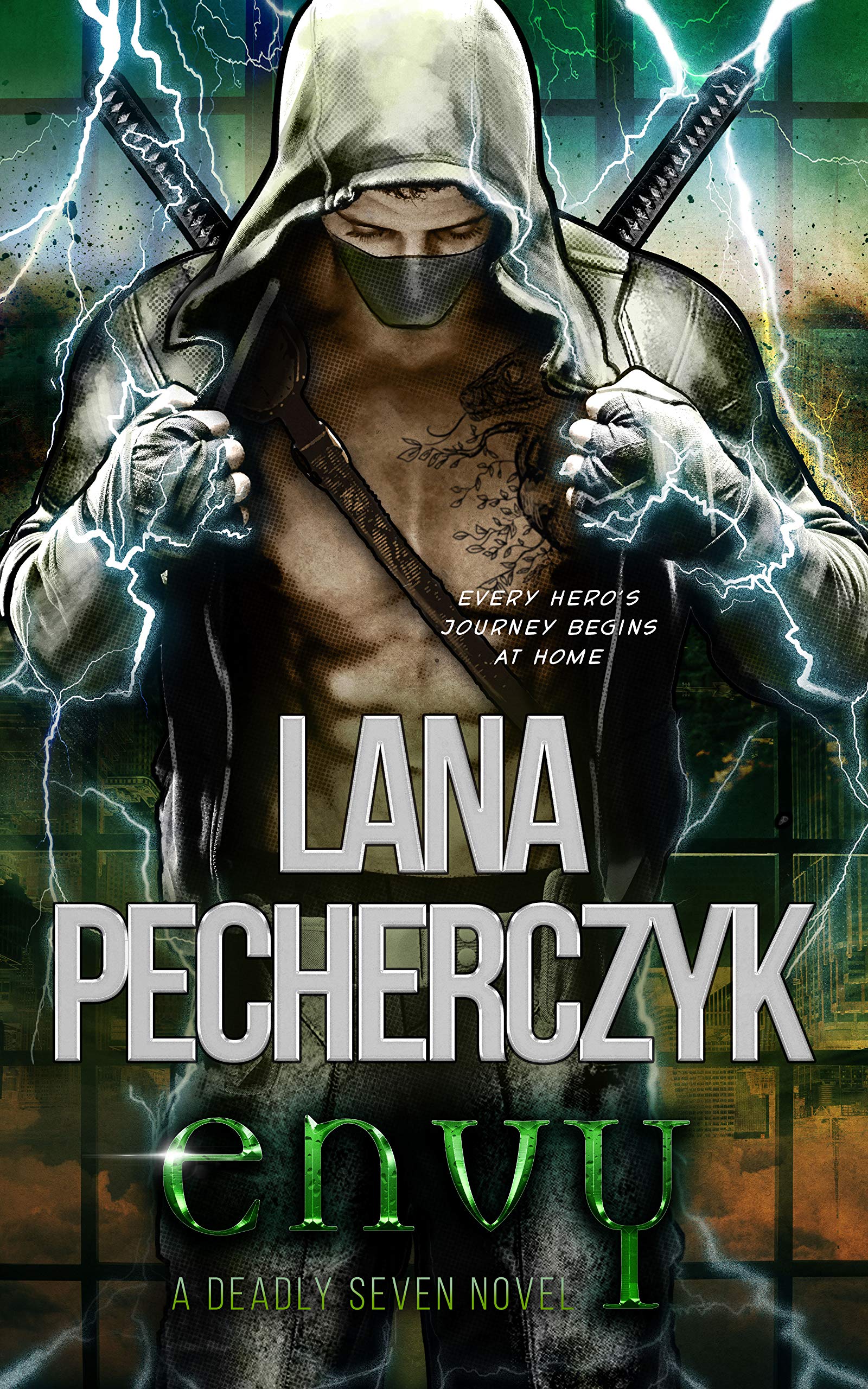 Deadly sin has consumed Cardinal City. Violence, murder, and mayhem are only the beginning. A family of genetically modified heroes is the city’s only hope…. if only they can resist sin long enough, they just might stand a chance. Disgraced hero Evan Lazarus punishes himself in the underground cage fighting scene. He blames himself for the tragedy that tore his family apart and left the city without its saviors. Traveling a dark path toward vengeance, if he’s not careful, he’ll become the evil he was created to fight. And then he meets her—a woman who embodies his sin’s opposing virtue. She’s smart, relentless, and electrifying … she’s everything he secretly craves.Grace Go almost died in the blast that killed her parents and now seeks justice for the survivors. When her investigation crosses paths with a fiercely protective but damaged hero, she is intrigued. The more she sees him, the more he ignites a desire she thought long gone, and the easier it is to stay ignorant of the secret that could ruin her opinion of him forever.When a figure from Evan’s past emerges, in league with the evil Syndicate, their scheme threatens to destroy everything he holds dear. Pushed to the limits, he will have to pull his family from the brink of oblivion and become the hero the city needs… or will envy drive him to destroy Grace and his only chance at love and redemption forever?♥Multi award-nominated series. ♥Finalist in the ARRA Award for Best Ongoing Paranormal Romance Series. ♥Finalist for the RWA Ruby Book of the Year award 2020. The Deadly Seven is a complete paranormal romance series featuring genetically modified heroes who must find a fated mate embodying their sin’s opposite virtue or become the deadly sin they are destined to destroy. Perfect for fans of superhero shows like Batman, Arrow, The Flash and Superman… but with more heartfelt and spicy romance from the hero and his love interest. For mature audiences only. More in the Deadly Seven SeriesSinner (Prequel Novella)EnvyGreedWrathSloth GluttonyLustPrideDespair