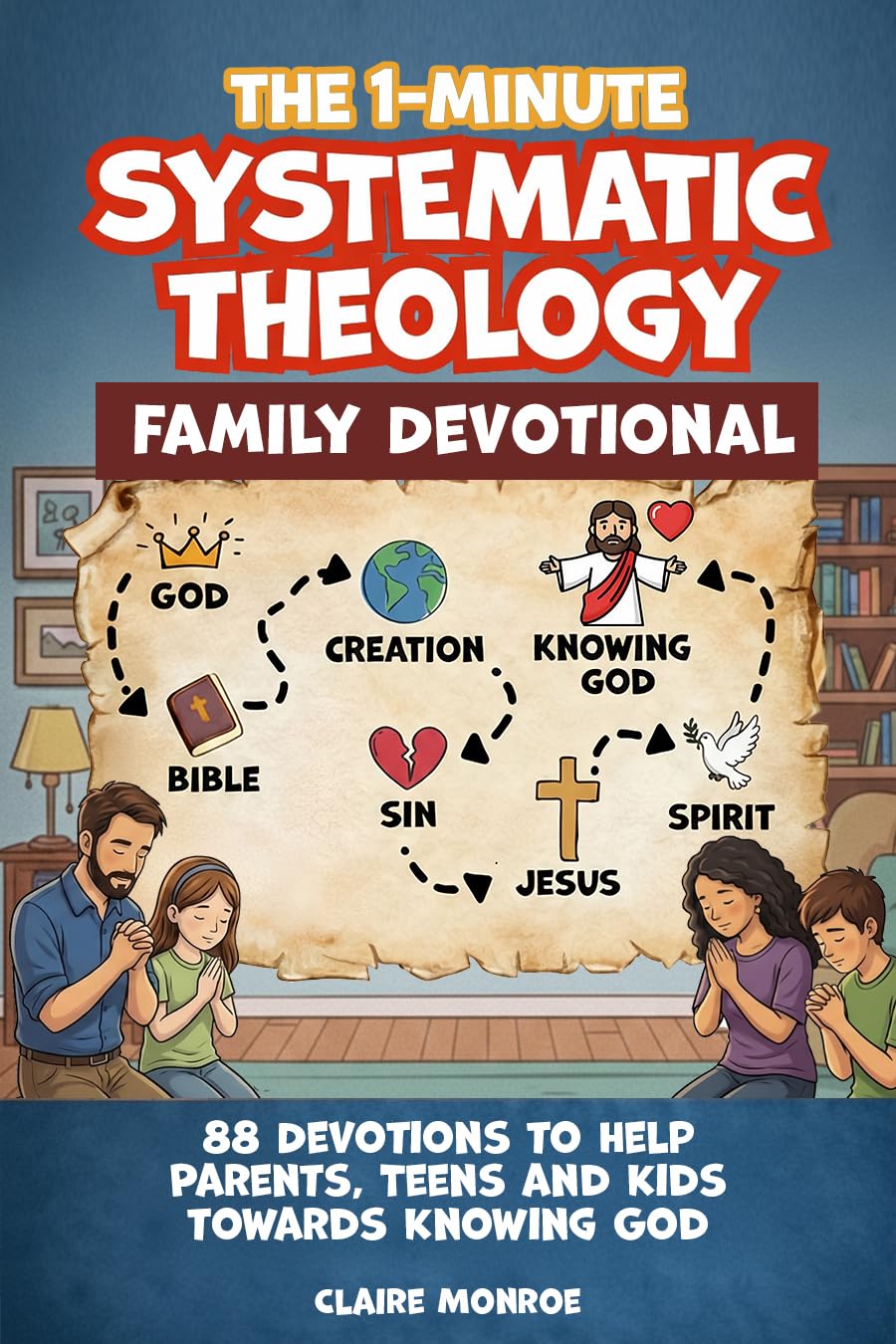 Imagine Your Whole Family Growing Closer to God and Each Other — In Just 1 Minute a Day, No Seminary Degree Required!Flexible format with 1-minute AND 5-minute options designed for real families with real schedules.No More Awkward Silence: Finally, Family Devotions That Spark Real Conversations About Faith, Life, and God’s Word.Theology Made Simple: 88 Big Truths Explained Through Everyday Analogies Like Wind, Water, and Treasure Maps That Kids Actually Remember.Flexible For Real Life: Choose the 1-Minute Version for Busy Mornings or the 5-Minute Extension When You Have More Time.Tough Questions Answered: Every Devotion Includes the Hard Questions Kids Actually Ask — With Answers That Actually Help.The Whole Family Grows Together: Content That Works for the Whole Family, With Parent Notes to Help You Lead With Confidence.Systematic Theology Family Devotional transforms faith conversations from awkward obligations to meaningful moments — making daily discipleship something your whole family will actually look forward to!What’s Inside This Complete Family Resource88 Daily Devotions — Organized Into 11 Chapters Covering the Whole Bible Story!Who Is God? — Discover the One True GodWhat Is God Like? — His Character and HeartGod’s Word — Why the Bible MattersGod Made Everything — Creation and PurposeWhat Went Wrong? — Understanding SinWho Is Jesus? — The Savior RevealedWhat Did Jesus Do? — Salvation ExplainedWho Is the Holy Spirit? — Our Helper and GuideWhat Is the Church? — God’s FamilyHow Do We Live for God? — Faith in ActionWhat Happens Next? — Hope for the FutureBONUS: Parent’s Companion Guide Included!How to Lead Family Devotions — Practical tips for every scheduleChapter-by-Chapter Overviews — Know exactly what you’re teachingWhen Kids Ask Hard Questions — Guidance for the really tough onesAge Adaptation Guide — Adjust for ages 4-6, 7-9, and 10-12Perfect For:Daily Family DevotionsSunday School Take-Home ResourceHomeschool Bible CurriculumBaptism & Dedication GiftsNew Believer Family Foundations~~~~~~~~~~~~~~~~~~~~~Use Alone OR Alongside “Systematic Theology for Kids For Kids Aged 6 to 9” also available on AmazonThis devotional stands completely on its own — but if you already have “Systematic Theology for Kids Aged 6 to 9”, it’s the perfect companion! Same 88 concepts, same order, same analogies — now in a format designed for family conversation and daily rhythm.No theology degree required. Just show up, open the book, and watch God work.Order now and start your family’s faith adventure today!