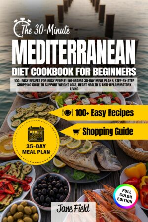 Are you busy, stressed, and tired of complicated diet books? 🍅🥗The 30-Minute Mediterranean Diet Cookbook for Beginners makes healthy eating simple, joyful, and realistic – without long hours in the kitchen or confusing meal plans.Grounded in the world’s most celebrated eating pattern, this all-in-one guide brings you 100+ easy recipes that balance fresh vegetables, wholesome grains, lean proteins, and heart-loving olive oil – ready in 30 minutes or less. Whether your goal is weight management, boosting heart and brain health, or calming inflammation, this book gives you the tools to thrive.👉 Here’s what you’ll get inside:âś… 100+ flavorful Mediterranean recipes for breakfasts, lunches, dinners, snacks, soups, salads, and desserts – practical, fast, and delicious.âś… A no-drama 35-day meal plan that removes guesswork, helps you stay consistent, and makes weeknight dinners stress-free.âś… Step-by-step shopping guides & pantry checklists so you’ll always know what to buy and how to stock your kitchen the Mediterranean way.âś… Lifestyle tips beyond the plate – mindful eating, simple movement, rest routines, and even socializing the Mediterranean way.âś… A conversion & portion guide to make cooking effortless, even if you’re brand new in the kitchen.Unlike other Mediterranean cookbooks filled with gourmet-only recipes, this beginner-friendly edition is designed for busy people who want results without overwhelm. Every dish is crafted to be nutrient-rich yet practical – perfect for working parents, young professionals, and anyone starting their health journey.đź’ˇ Imagine starting your day with a Greek Yogurt Parfait topped with figs, enjoying a quick lunch like Lentil Wraps with Tahini, and ending with Lemon-Garlic Salmon over couscous – all made in under 30 minutes. That’s the Mediterranean lifestyle – simple, delicious, and sustainable.✨ Don’t wait for the “perfect moment” to start eating better – bring the Mediterranean way of living into your kitchen today!👉 Scroll up, click “Buy Now,” and take the first step toward lasting health, energy, and joy with every meal. ❤️