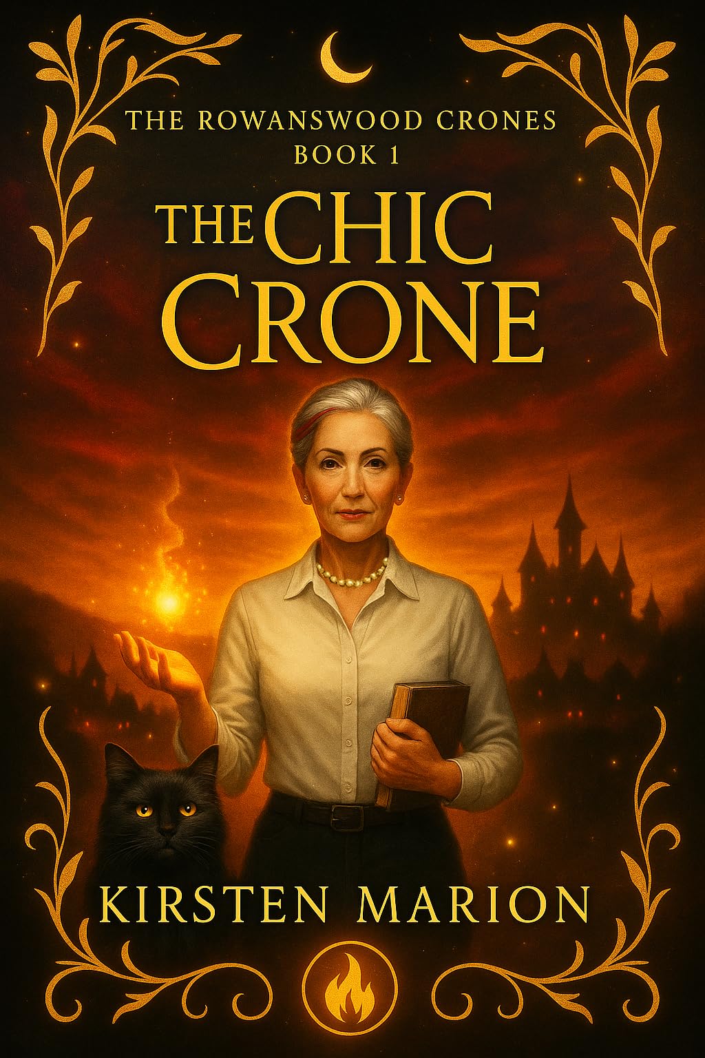 It’s never too late to spark a little magic.At sixty, Olivia Furie thought she had life figured out—until it all went up in flames.Literally. Her husband’s sudden death leaves her broke, homeless, and strangely combustible. When fires start erupting wherever she goes, Olivia begins to suspect her perfectly curated life might have hidden more than just financial secrets.When a mysterious letter from her long-dead grandmother arrives, Olivia—and her grumpy cat, Magnus—are forced to flee the ashes of their old life and seek refuge in the hidden village of Rowanswood. There, among eccentric magical beings, ancient secrets, and a dangerously attractive man who refuses to stay out of her way, Olivia discovers she’s not just unlucky… she’s powerful.But power comes with rules—and consequences. As Olivia struggles to accept her long-dormant magic, a dark force stirs beneath Rowanswood’s charm. If she can’t master the fire within, she may lose more than her new beginning—she could doom the entire realm.If you like cozy magical tales, fierce midlife heroines, and a slow-burn romance with a side of sass, you’ll love The Chic Crone.