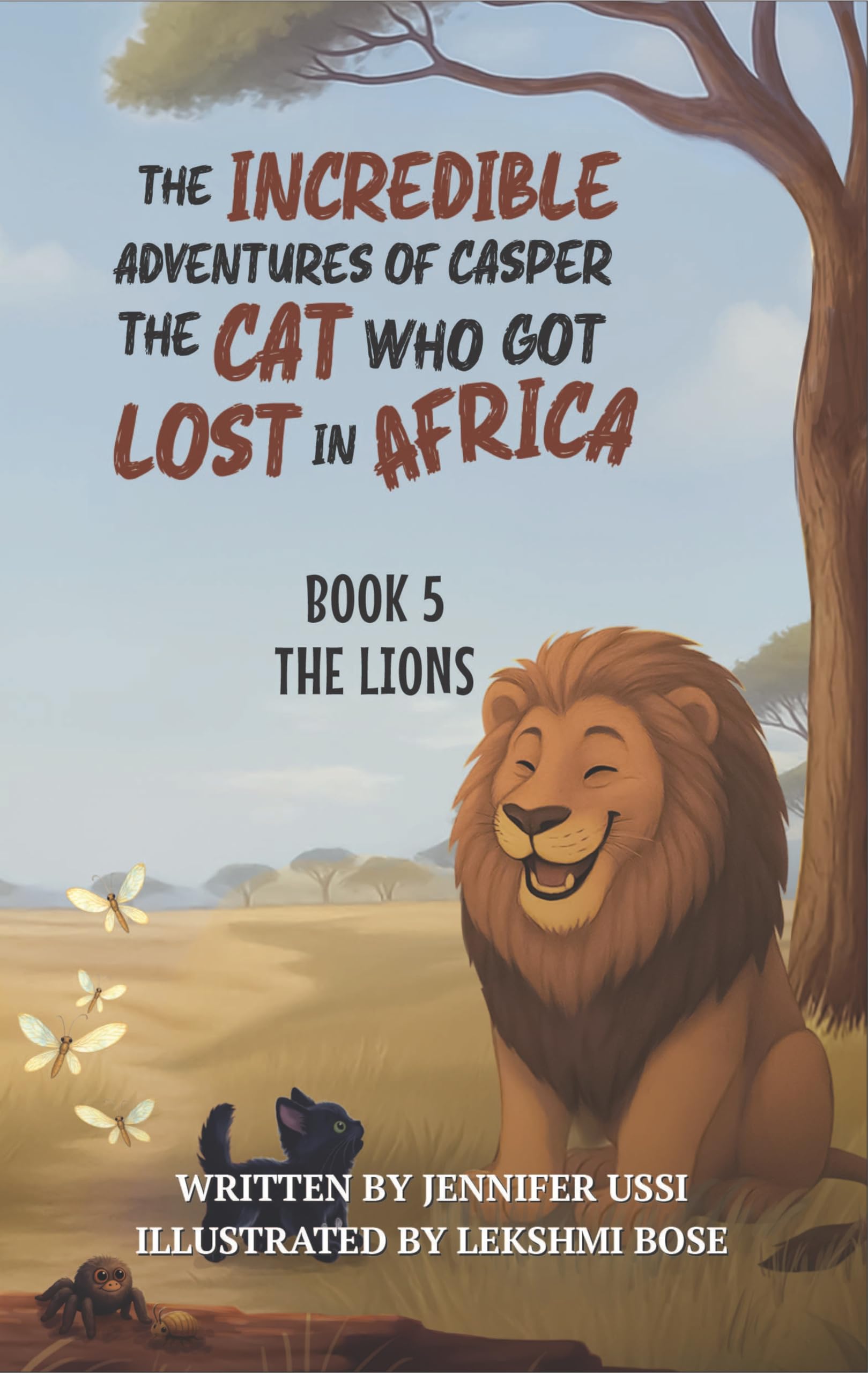 Book 5 in The Incredible Adventures of Casper the Cat Who Got Lost in Africa takes readers deeper into the wild as our brave little city cat crosses paths with Africa’s fiercest—and most misunderstood—creatures: the lions.After leaving the noisy baboons behind, Casper wakes up beneath a tree full of chattering guinea fowl, only to stumble straight into the path of two enormous lions. But Hasani and Harry aren’t quite what she expected. Between their royal-sized egos, jump-scares, and thunderous laughs, Casper soon discovers that being king of the jungle comes with its own set of problems—especially when poachers return to the savannah.Joined by an army of surprising new allies—spiders, scorpions, and even antlions—Casper helps the pride turn the hunters into the hunted, proving once again that courage doesn’t always come with claws and fangs.Perfect for readers ages 5–10, The Lions is a beautifully illustrated chapter book packed with:• Exciting animal adventures and laugh-out-loud surprises• Big-hearted themes of courage, teamwork, and protecting others• Real wildlife facts woven seamlessly into the storyWritten by award-winning filmmaker Jennifer Ussi and illustrated by Lekshmi Bose, this thrilling 7,000-word tale roars with adventure, humor, and heart—reminding readers that even the smallest voice can make a mighty difference.