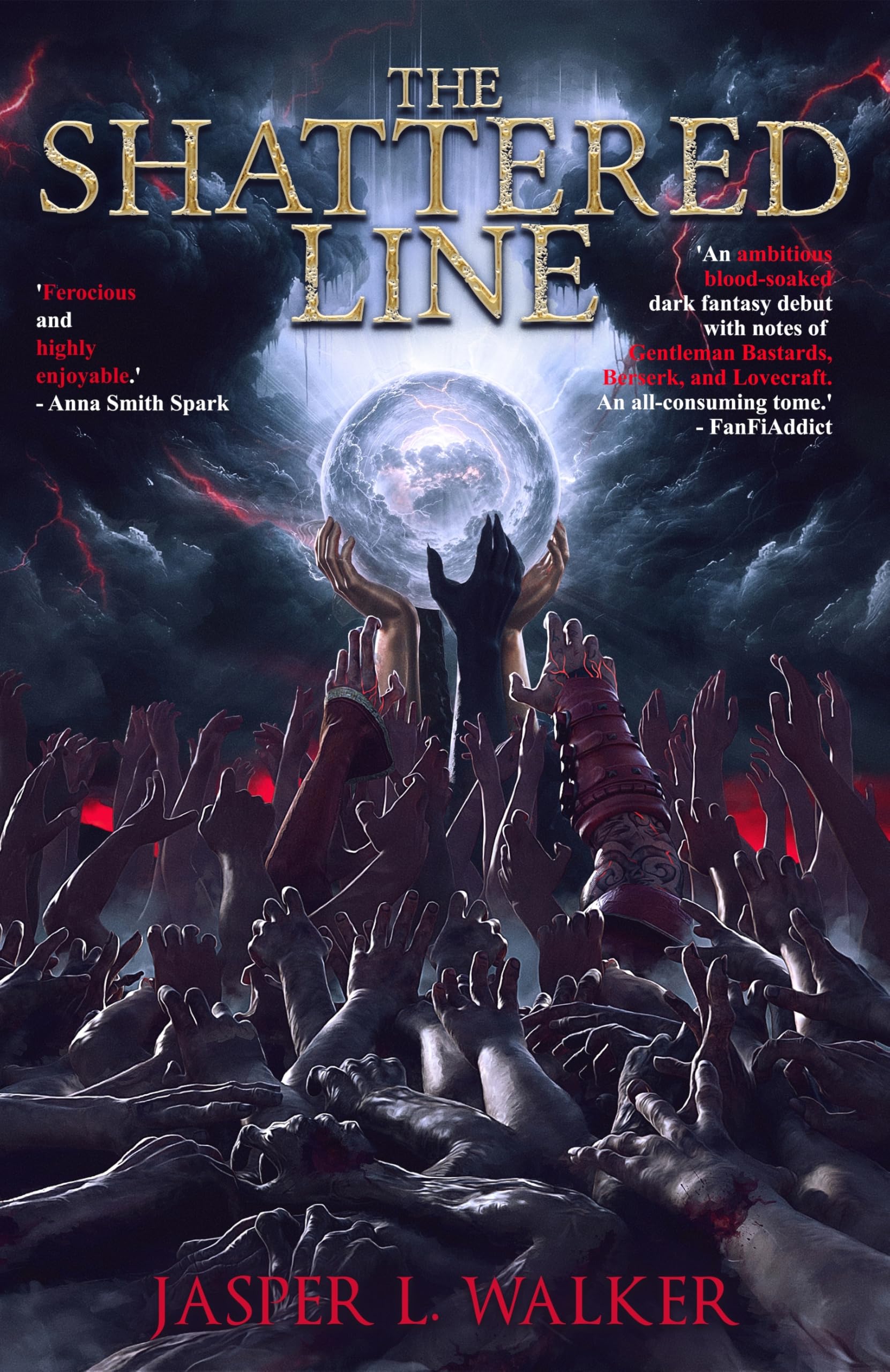 ‘Ferocious and highly enjoyable.’ – Anna Smith Spark’An ambitious, blood-soaked dark fantasy debut with notes of Gentleman Bastards, Berserk, and Lovecraft. An all-consuming tome.’ – FanFiAddict’Somewhere in the multiverse Brian Lumley and Scott Lynch are drinking buddies and write books together. In this universe we have a more compact version of the pair in Jasper L Walker.”I went into The Shattered Line expecting a dive into the grimdark depths, and Jasper L. Walker’s debut delivers exactly that: a foul, unrelenting cocktail of heist thrills, vengeful fury, and cosmic horror in a world that’s already half-dead and itching to finish the job.”Wow did this come out swinging! This is grimdark that leans into apocalypse and cosmic horror in a big way (which I really love). The opening sets a brutal tone and the story keeps widening from there: street-level cons and theft, imperial campaigns at the edge of reality, and a frontier where the world itself feels like an enemy.’For fans of Joe Abercrombie, Mark Lawrence, Glen Cook, Scott Lynch, Anna Smith Spark, Brian McClellan, Evan Winter, and Brent Weeks. If you’re tired of the endless churn of meaningless gore and pointless nihilism, if you want to read Grimdark Epic Fantasy done right, add it to your Cart or Preorder!A brutal dictator hunts a God-releasing Artefact to save a dying world, but salvation demands massacre.A vengeful father vows to rip his throat out or die trying.A crew of thieves are blackmailed into stealing from the dictator.The universe has ended before.This time, it might stay dead.What am I getting into?The Lies of Locke Lamora inspired Oceans Eleven style Heist Fantasy The Rage of Dragons inspired Revenge Fantasy Horror (just because I love horror)Brian McClellan & Brent Weeks inspired Military Fantasy Broken Earth inspired Apocalypse Fantasy Lovecraft inspired Cosmic Horror Fantasy Sanderson inspired Magical Discovery Fantasy Sarah J. Maas inspired Romance Fantasy All under the trappings of Epic Grimdark. But deep down, it’s about the corrosion of self and society in a world that just doesn’t give a damn.The Shattered Line balances the darkness with equal light and joy, because darkness hurts the most when there’s something beautiful to lose. If you’re intrigued, add it to your cart right now!